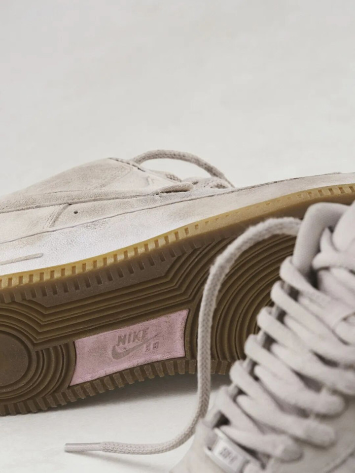 这款首流配色的 Nike SB Air Force 1 选拔了浅棕色的麂皮鞋面,带来可以的质感体验。