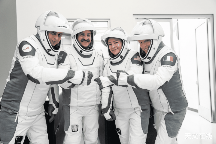好意思国国度航空航天局(NASA)的SpaceXCrew12任务四名成员,身着压力服在加州霍桑的SpaceX总部合影。从左至右交替是:俄罗斯国度航天集团宇航员、任务众人安德烈费佳耶夫,好意思国国度航空航天局宇航员杰克哈撒韦和杰西卡梅尔(别离担任飞翔员和指导官),以及欧洲空间局(ESA)宇航员、任务众人索菲阿德诺。图片着手:SpaceX