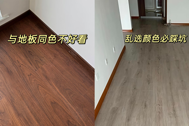 不要选∶异色踢脚线,视觉连贯性差,造成突兀的分割线,拉低合座装修层次,你家装修很竣工,戒指踢脚线一装导致装修显低价,那就一举两失了!