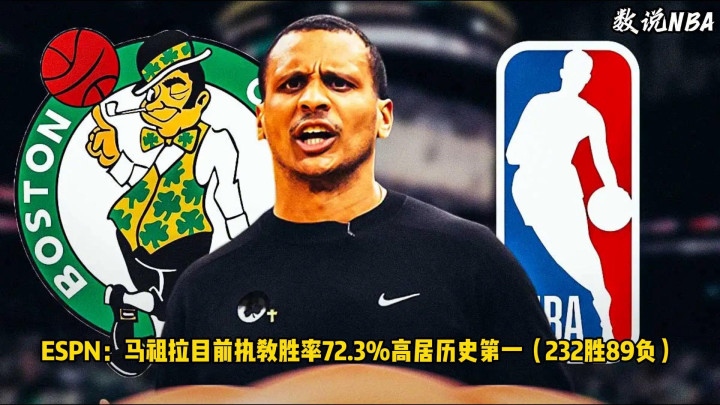 ·华纳媒体发文指出凯尔特东谈主主帅乔马祖拉当今以百分之七十二点三的抓教胜率高居好意思智兰历史第一。