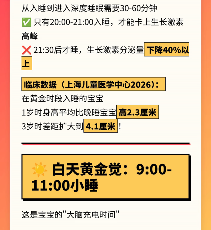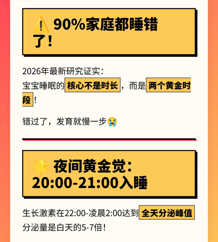 这个黄金时段等于晚上九点到凌晨少许。为什么这个技能段这样出奇呢?因为宝宝的孕育激素,并不是均匀散布在整晚的休眠里,它更像一个准时上班的艰辛职工,在夜晚深休眠阶段迎来一天中最奋力的职责岑岭。淌若宝宝在九点前还莫得睡着,或者固然躺在床上了却还在番来覆去莫得参加深休眠,那就像是把这位艰辛的职工关在了门外,白白错过了它最奋力职责的那几个小时。