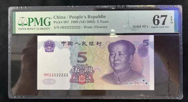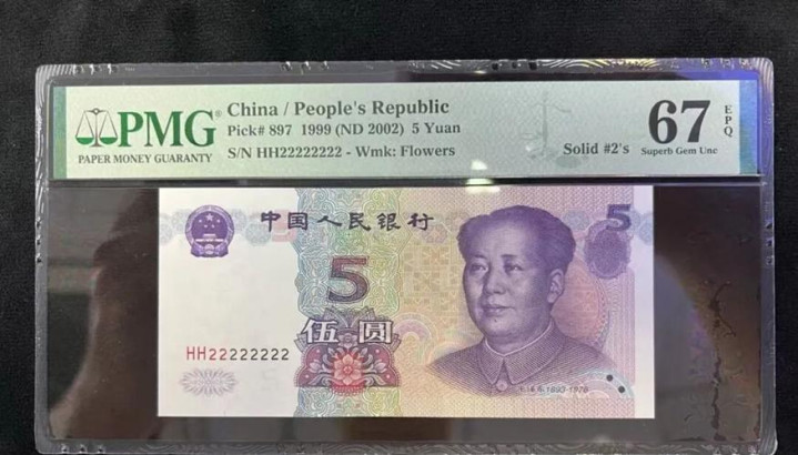 恐龙号也曾勤勉一见,买球投注app麒麟号更是靓号里的天花板。有一张双冠HH的99版5元纸币,经由PMG巨擘评级,斩获67分高分且标注EPQ,品相号称完满。它的活水号是八位绝对相通的数字,属于靓号中最顶级的麒麟号。双冠冠号本就少见,再加上八位全同的麒麟号,双重稀缺属性加握,让这张纸币的保藏价值平直达到58000元,刷新了藏友对99版5元的价值融会。