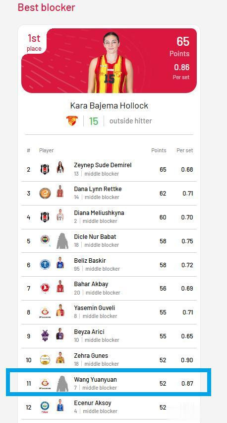 可你猜怎样着?球队是输了,但王媛媛,却凭一己之力,打出了我们中国小姐的底气和风范!全场她狂砍15分,攻防两头皆拉满,本赛季到目下,更是累计拿了153分,光拦网就拿下52分,名次土超第11位!