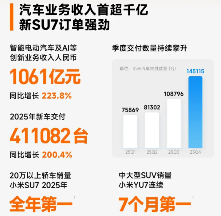 第三伟业务天然即是汽车了,买球投注平台app2025年请托汽车411082 台,收入高达1061 亿元,同比增长 223.8%,是小米通盘业务中,增长最快的。