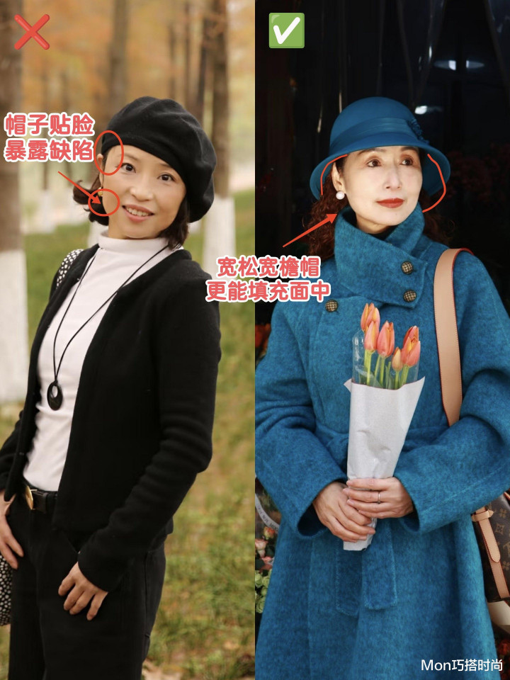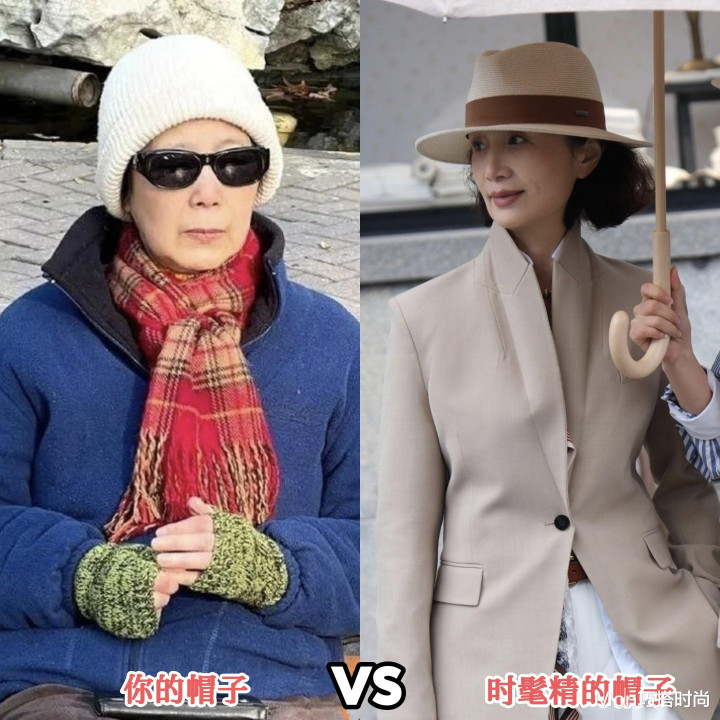 不是说大龄女性戴帽子可以减龄吗,那这又是怎么回事?大家去和那些将帽子戴得优雅漂亮的人对比一下就知道了,都是因为咱们戴错了帽子!