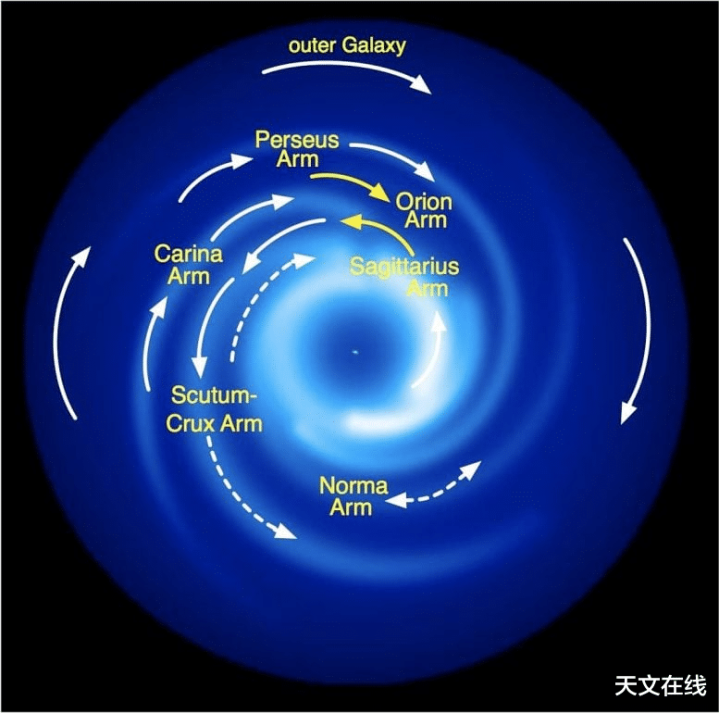 星河系表露图,显现来自东说念主马臂的反向磁场。起原:乔安妮布朗博士,或范埃克等东说念主征询中的图11。