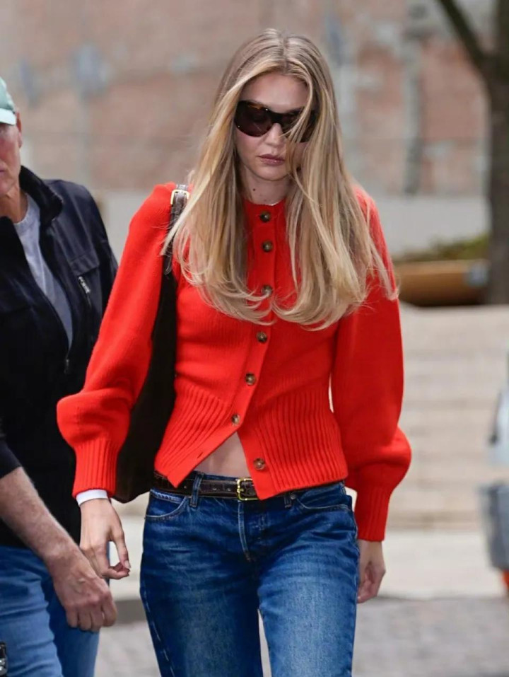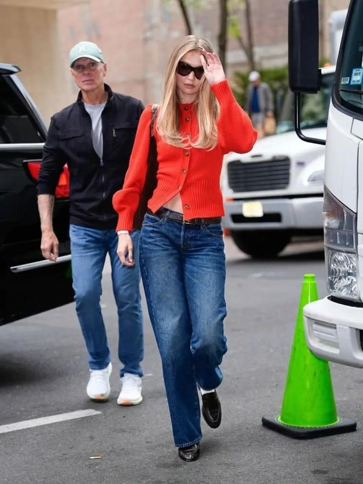 买球投注平台 超模Gigi带火春日穿搭: “橘红忠实衫+牛仔裤”, 恋爱后越来越好意思