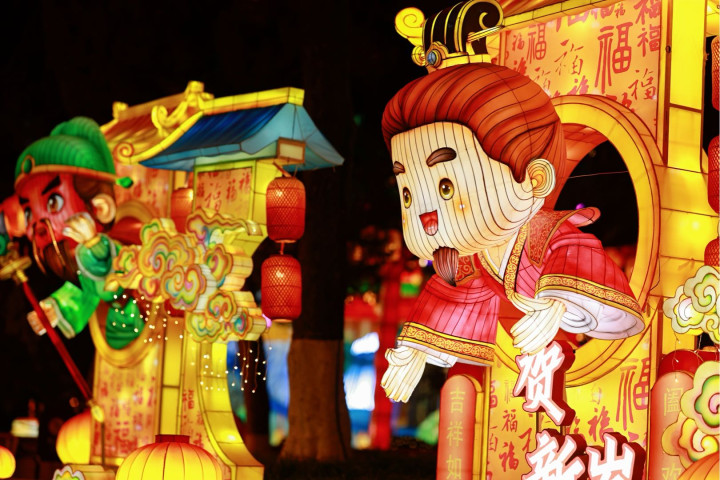 三国文化是2026武侯祠成皆大庙会的中枢底色,24组三国英豪主题灯组,以场景规复、东说念主物塑造与创意演绎为载体,终了历史底蕴与现代体验深度合伙,千里浸式三国境界跃然目下。